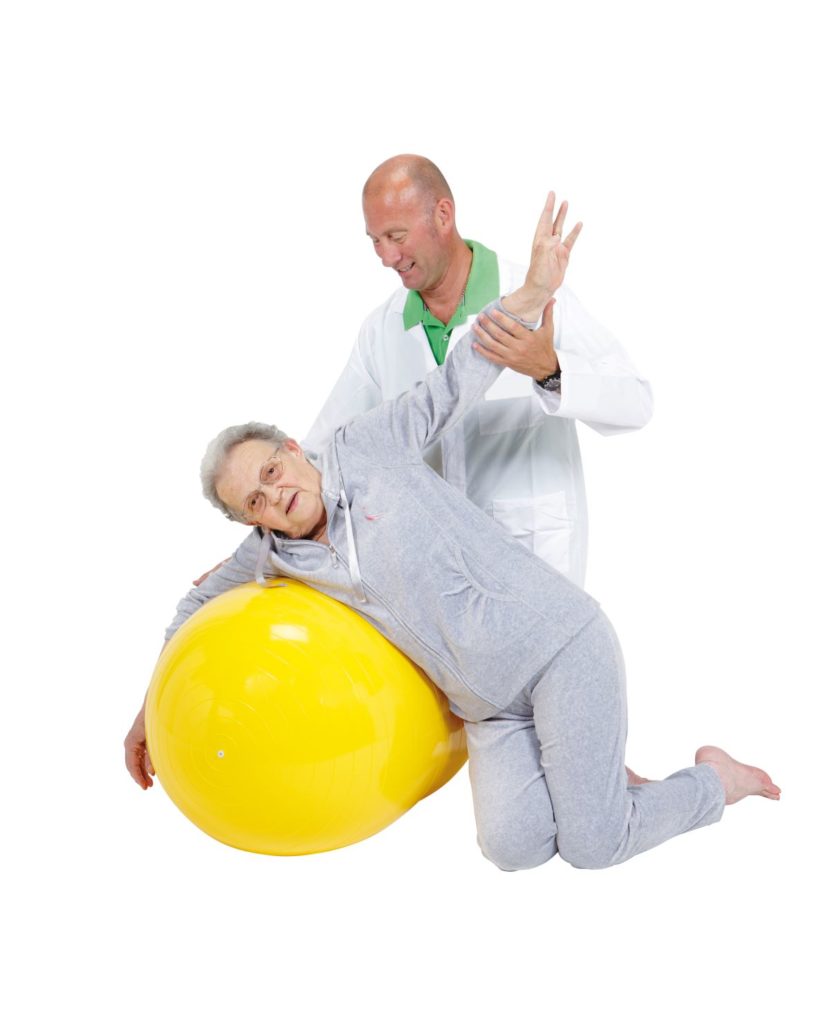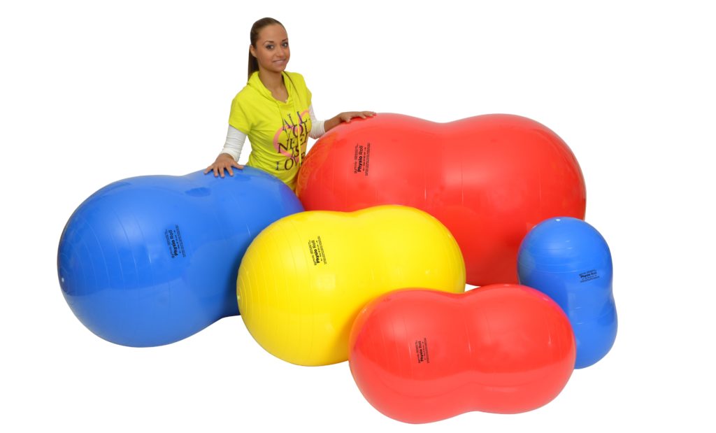 このピーナッツ型をしたボールは、安定性が高いので長年にわたり理学療法の現場で使用されてきました。しばしば類似品が製造されましたが、決して同じものは作られませんでした。バランスやコーディネーションに問題を持つ人のセラピーを行う場合、セラピストはボールに座り、患者さんの動きをサポートすることができます。