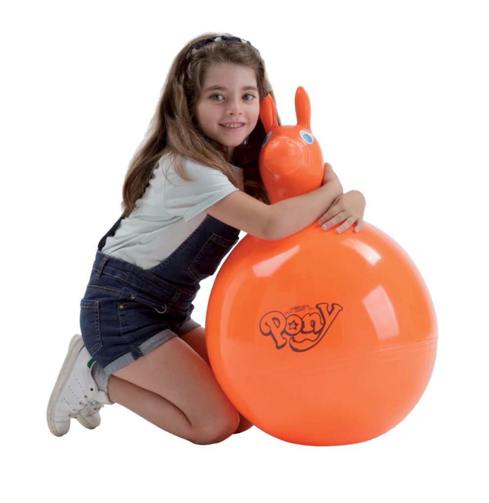 PONYはダイナミックに弾むことのできるボールです。ホップの中でも変わり種で、馬の顔がついていて持ち手が耳となっています。まるで、乗馬をしているかのように楽しく運動しながらバランス感覚を養うことができます。とても丈夫に作られていて、室内用遊具としては最適です。クラシックなホップや可愛い模様のホップ・ファンタジー、さらに持ち手が離れたオッピーも同じように、楽しい遊び・運動の中でバランス感覚を養うことができるツールです。