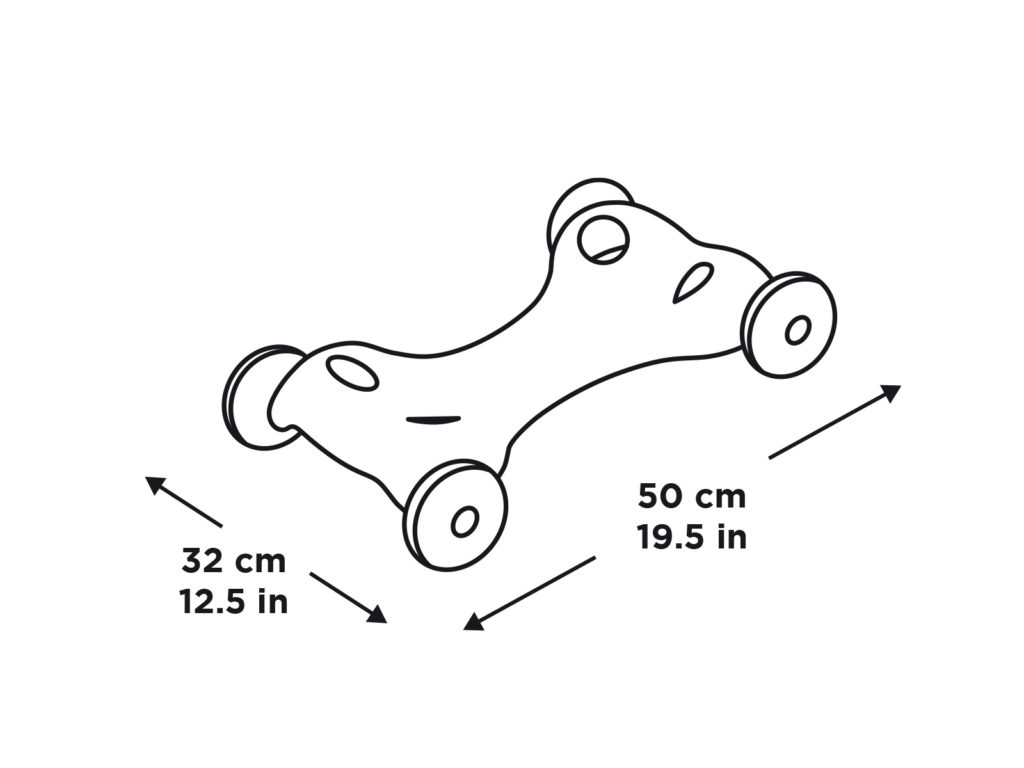 ジフィ・ラッフィー・コディの足をこのスイングボードの穴にはめ込むと、4輪車のように遊ぶことができます。